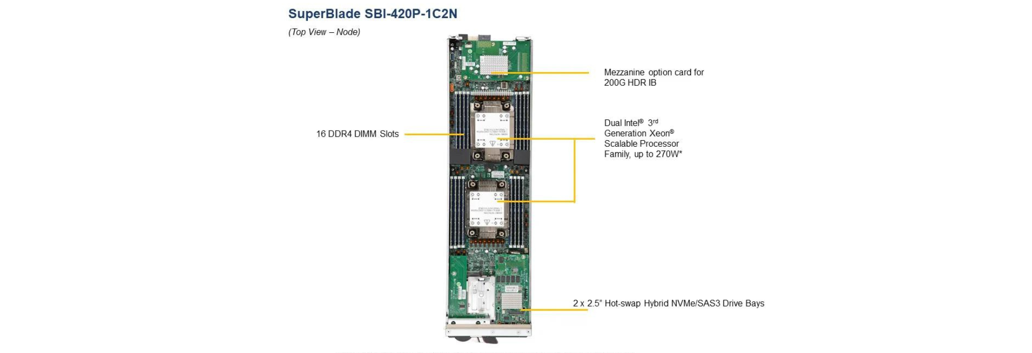 | Networking | AOC-IBH-X6HS-B | - | SuperBlade InfiniBand HDR one port Mezzanine card with mounting bracket |